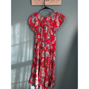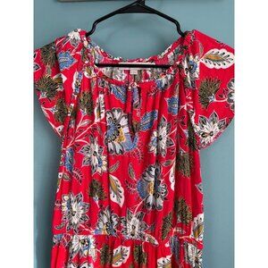 Loft Women's Red Floral Flutter Sleeve Summer Midi Dress
