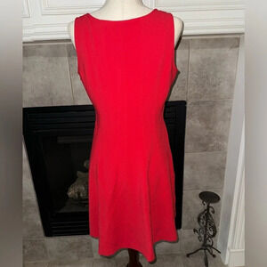 Loft Womens Red Round Neck Sleeveless Lined Fit & Flare Dress 6 Petite