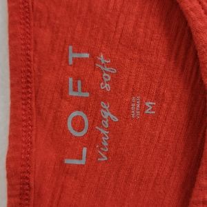 Loft Women's Red W/ Crochet Accent Short Sleeve Top, M
