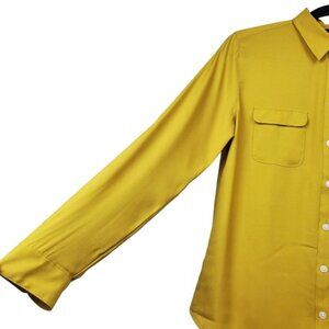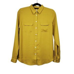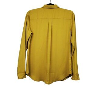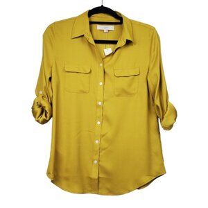 Loft Womens Roll Tab Sleeve Mustard Yellow Button Front Shirt Size S NWT