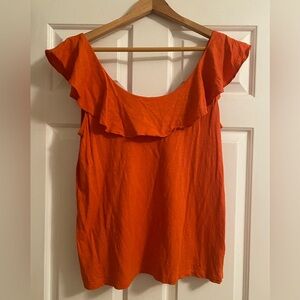 Loft Women’s Scoop Neck Orange Ruffle Top Size M
