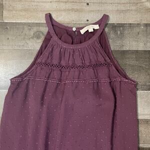 Loft Women's Shift Dress Plum Purple Swiss Polka Dot Crochet Size S