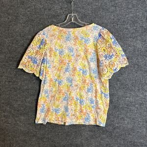 Loft Womens Shirt Size XL Floral Multi Color Puff Sleeve Boho Eyelet Cotton