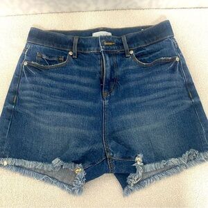 Loft Womens Size 0/25 Shorts Blue Denim Pockets Fringe Bottom Cutoff Dark Wash