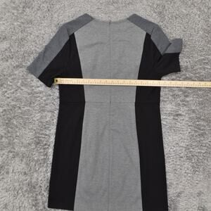 Loft Women's Size 12P Sheath Dress Gray Knee Length Casual Polyester Short Sle