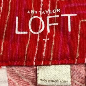 These Loft shorts are a stylish addition to your wardrobe! The vibrant red color, combined with pink and white zig-zag stripes, creates a fun and eye-catching look. Perfect for warm weather, these size 6 shorts offer a comfortable and flattering fit. Dress them up with a blouse or keep it casual with a tee! In great condition, ready for a new home. Grab these trendy shorts today!