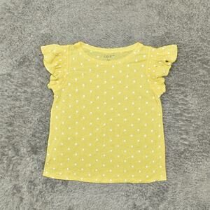Loft Women's Size L Blouse Top Short Sleeve Yellow Linen Round Neck Polka Dot