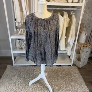 Loft Women's Size M Long Sleeve Floral Keyhole Tie Top #0372