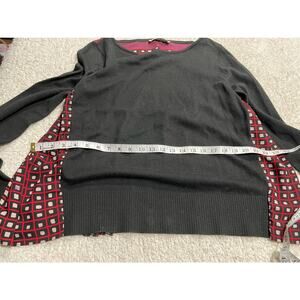Loft Women's Size Medium Boat Neck Back Printed Geo Pleated Sweatshirt Black Red