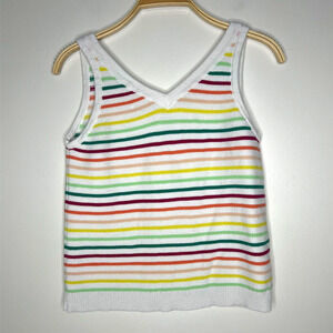 Loft Women's Size Medium Button Front Sweater Tank Cotton Rainbow Stripe