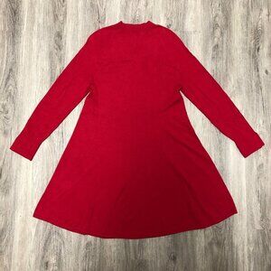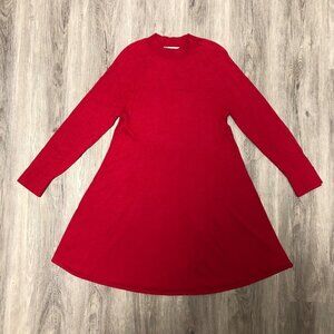 Loft Women's Size Medium Wool Blend Sweater Dress Red Knit Long Sleeve Mock Neck