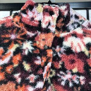 Loft Womens Size S Floral Fleece Jacket Multicolor Snap Closure Size Small