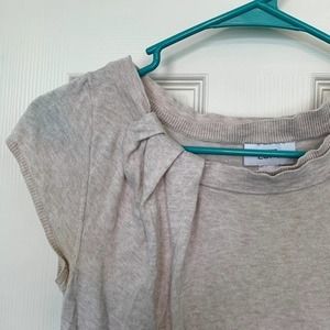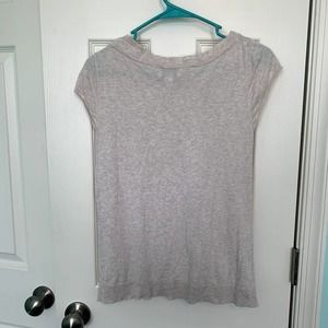 Loft Small Top Beige Cap sleeve Pleated neck Ribbed neck and hem Pullover 53% cotton, 41% rayon, 6% wool