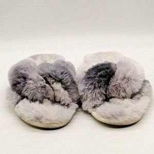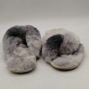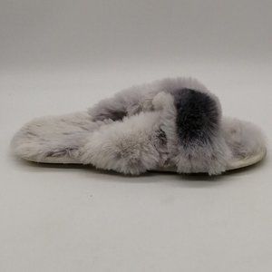 Loft Womens Slide Slipper Gray Faux Fur Flat Heel Faux Fur Lined Cushion L 9-10