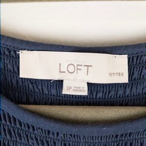 Loft Womens Smocked Tunic Top Size S Petite Flutter Sleeve Blue Summer Boho