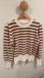 Loft Women’s Striped Puff Sleeve Knit Crewneck Sweater Pullover Tan White Size S