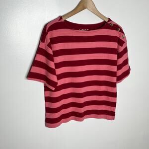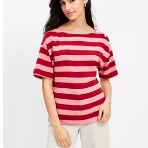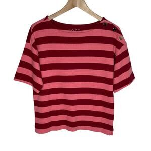Loft Womens Striped Shoulder Button Harbor Tee XS Pink Cotton Boxy Nautical