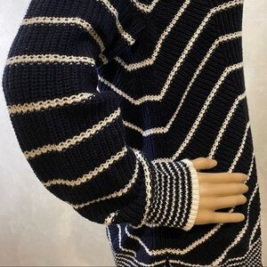 Loft Women’s Sweater Navy blue & White Striped Size L Relaxed Sweater
