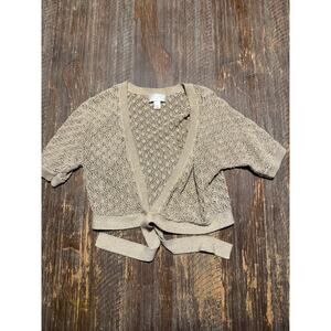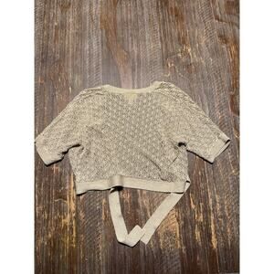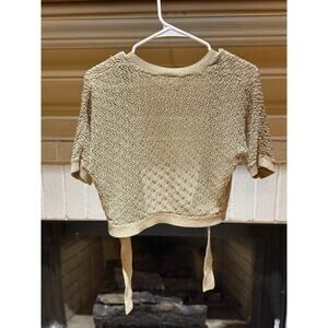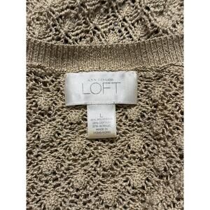 This is a beautiful Loft women's sweater, perfect for Spring and Fall. It is a size Large. The material is a blend of polyester, cotton, and acrylic, making it comfortable and easy to care for. This sweater is in excellent condition and has been well-maintained. Get ready to add a touch of elegance to your wardrobe with this Loft sweater!