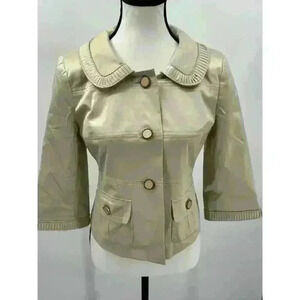 Loft Women's Sz 2 Light Green Button-Up Jacket Stunning Sleeve & Neck Detail