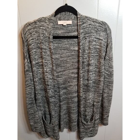 Loft Women's Sz Med Petite Black/White Heathered Ribbed Open front Lightweight