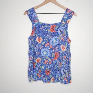 Loft Womens Tank Top Medium Blue Orange Floral Multicolor Feminine Spring Summer