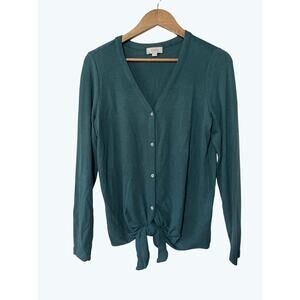 Loft Women’s Teal Cardigan Sweater Small V-Neck Button Front Knot Hem