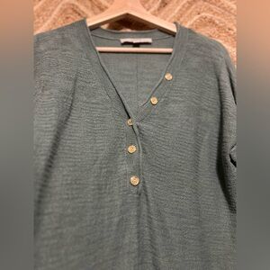 Loft Women's Textured Stitch Henley Green Sweater,VNeck,Size M,Great Condition