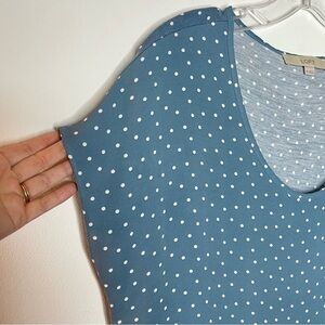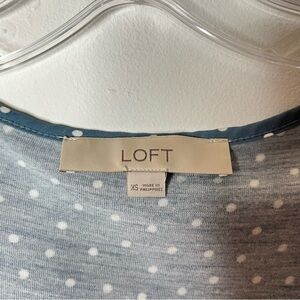 Loft Women's Top XS Blue Polka Dot Print Dolman Short Sleeve Tunic Mix Media