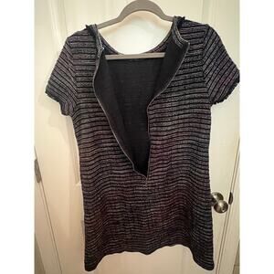 Loft Women's Tweed Button Trim Mini Sheath Dress 10 Navy Blue Classic Elegance