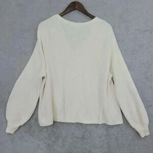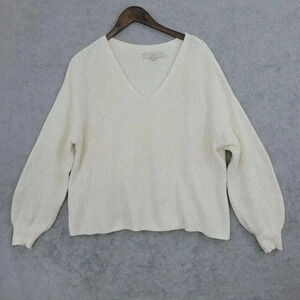 Loft Women's V-Neck Knit Sweater Medium Balloon sleeve Ivory 19CT