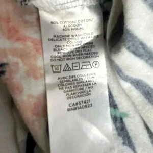 This Loft T-shirt is a women's basic style in size large, featuring a multicolor striped pattern. Made from a blend of cotton and modal, it offers a comfortable fit with a V-neckline and short sleeves. Suitable for casual outings or relaxed gatherings, this T-shirt is versatile for various occasions. Manufactured in Vietnam, it is pre-owned.