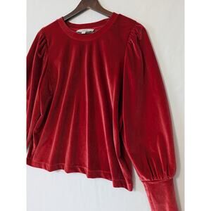 Loft Womens Velvet Long Puff Sleeve Copper Red Top Size Small Office Casual