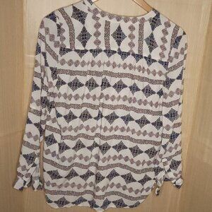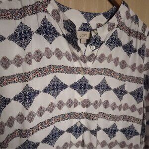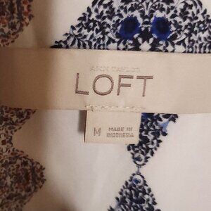 Loft women’s white blue floral rayon relaxed fit tunic medium. Good condition. Measurements are: 23” sleeve, 24” from shoulder to shortest part of hem, and 22” from armpit to armpit.