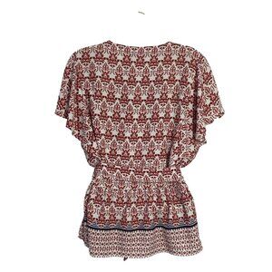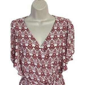 Loft Womens Wrap Blouse Top Size L Red Boho
