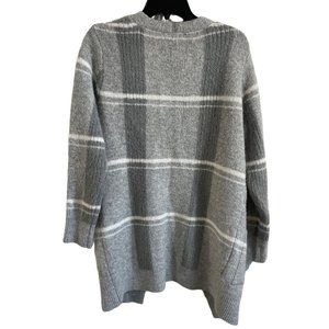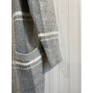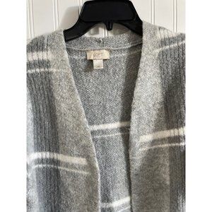 Loft Women's X-Small Grey White Stripe Fuzzy Open Front Cardigan Oversized