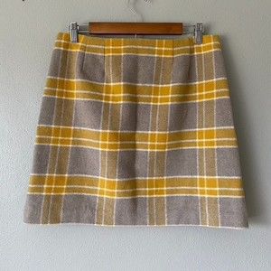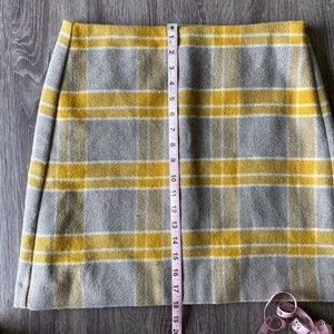 Loft Women's Yellow Gray Plaid Wool Blend Mini Fully Lined Side Zip Skirt Size 6