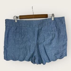 Loft Womens size 14 Riviera Linen Cotton Scalloped Hem Shorts Blue