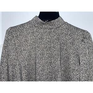 Loft Women's size Medium Leopard Print Mock Neck Puff Balloon Sleeve Blouse