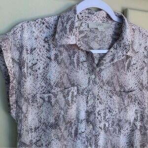 Loft Womens snake print short sleeve button up top Size small sleeveless blouse