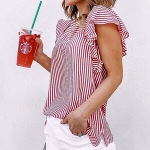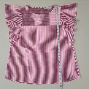 Loft Women's Red Striped Flutter Sleeve Rayon Blouse