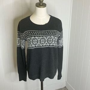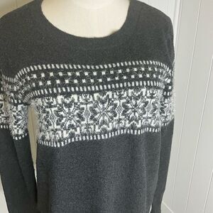 Loft Women's Size Medium Black White Snowflake Wool Mohair Blend Pullover Sweate