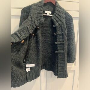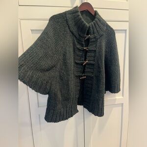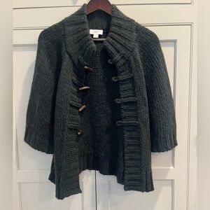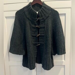 Loft Wool Alpaca Blend Chunky Knit Poncho/ Cardigan Dark Green Size Small