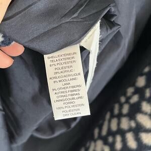 Description: Perfect fall or Texas winter coat, lined, polyester, and wool blend, full zip and buttons