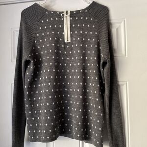 Loft Wool Blend Gray Crew Neck Polka dot Sweater Size Large