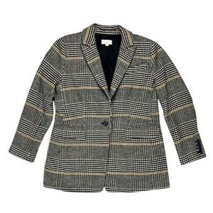 Loft Wool Blend Houndstooth Blazer 12P Black White Business Classic Jacket Coat