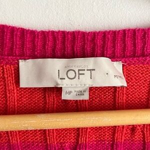Loft Wool Rabbit Hair Blend Striped V Neck Sweater