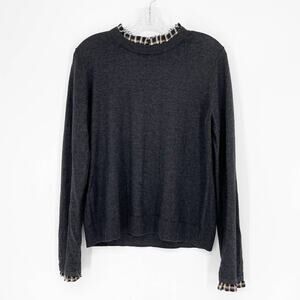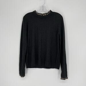 Loft Wool Ruffle Plaid Gray Sweater Size Medium