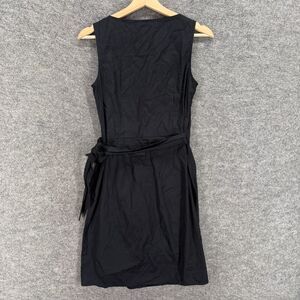 Loft Wrap Dress Women 2 Black Short V-Neck Tasseled Tie Up Sleeveless Cotton