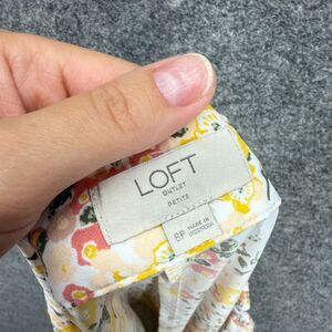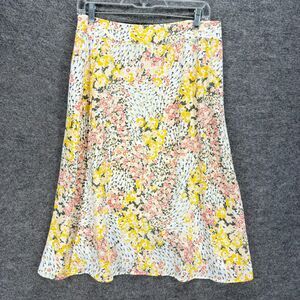 Loft Wrap Skirt 8P Petite White Floral Midi Zipper Mid Rise Stretch Casual